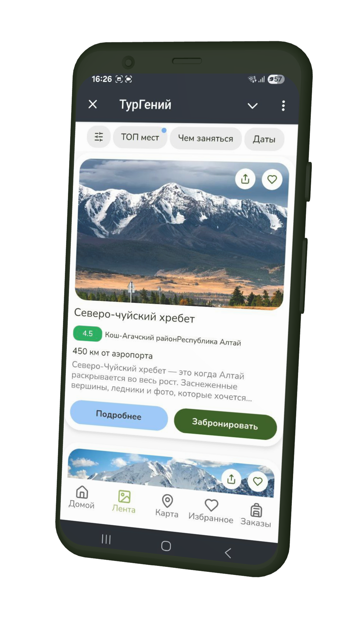 Работает как маркетплейс: в приложении собраны события и активности Алтая. Всё видно заранее — описания, фото, цены и возможность сразу забронировать. Выбирай по датам, категориям или смотри, что рядом с тобой.